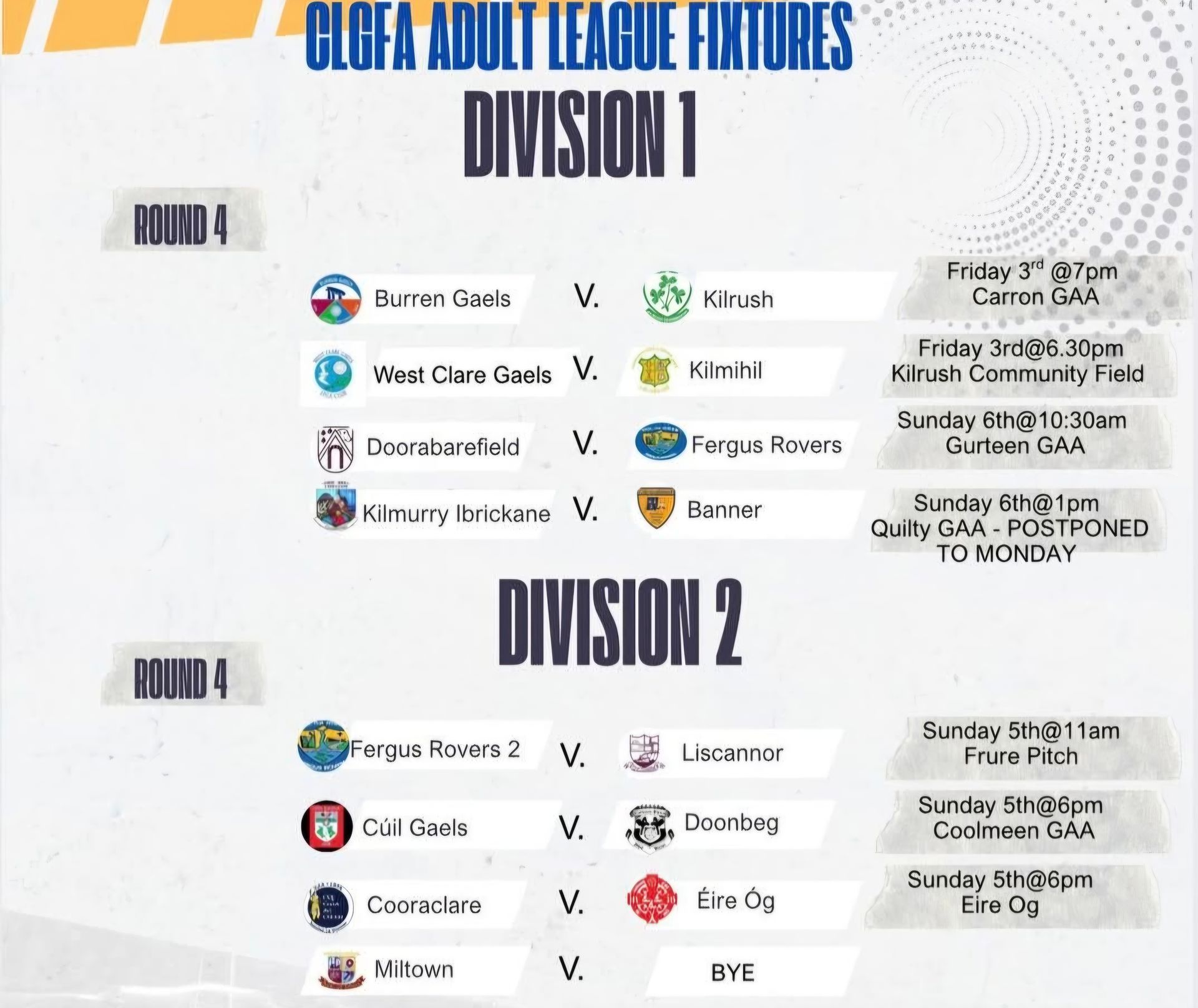 DIV.2 LEAGUE.22-3-26. FERGUS ROVERS 3-4 COORACLARE 2-15